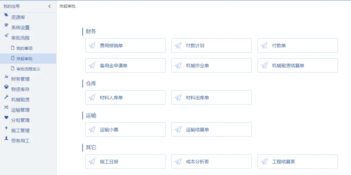 審批流程:我的事項、發起審批、審批流程定義